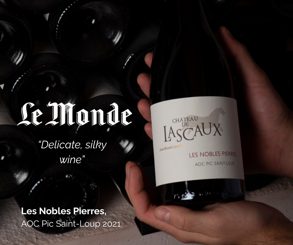 Our wine Les Nobles Pierres, AOP Pic Saint Loup 2021 vintage, was selected by Le Monde in the article « Languedoc on top of the World » (April 2026, no. 25287).